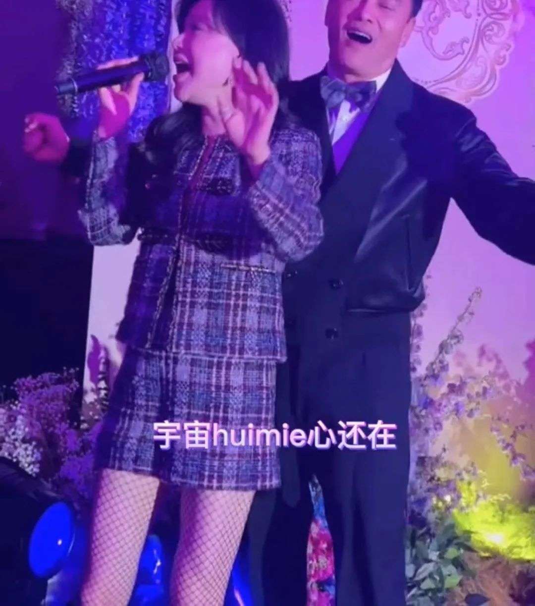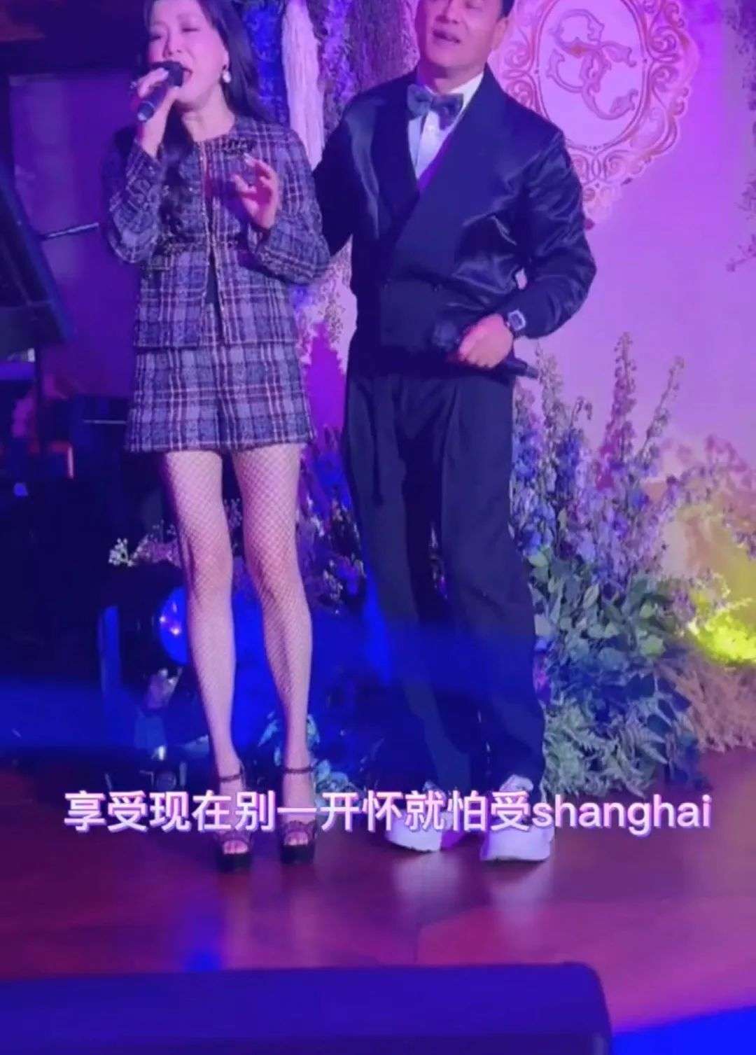 夫妻俩的感情看起来相当不错,派对现场两人合唱了一曲《死了都要爱》。不是歌手出身的他们,尽管演唱实力不是特别好,但他们都唱得非常投入,一度沉醉地闭上了眼睛。