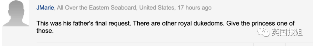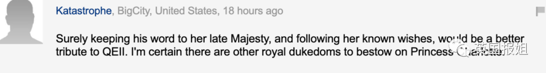 “把女王的遗愿完成,对女王来说是种尊重吧。我觉得应该找一个其它的王室公爵头衔给夏洛特公主。”