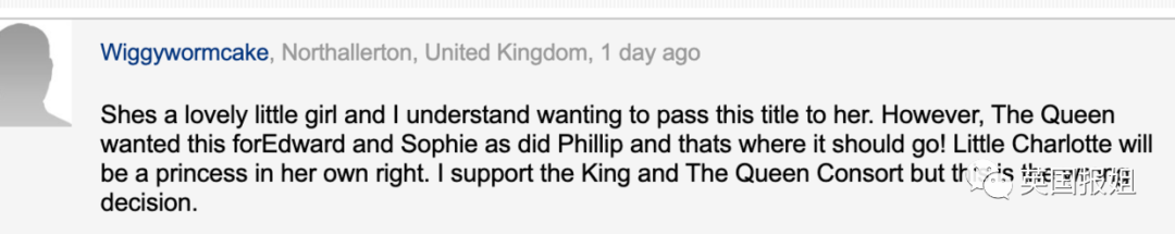 有人觉得夏洛特小公主没必要获得这个头衔: