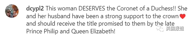 “苏菲值得成为公爵夫人!她和她老公会成为王室的坚强后盾的,而且女王和亲王答应给的头衔就应该给啊。”
