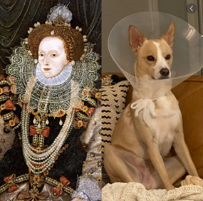 无法忍受的老母亲,给他带了一个伊丽莎白圈。