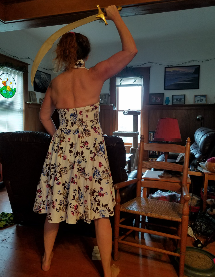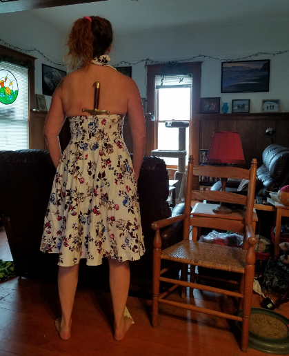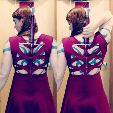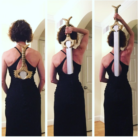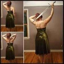 裙摆太短遮不住剑身,让人还以为你多长了一条腿。裙子领口高看起来像戴着某种奇怪的驼背矫正器。而裙子太紧不利于顺利插剑和拔剑。