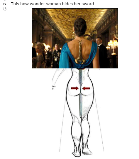 Buzzfeed网站编辑指出,这种藏剑秘术必然会误伤持剑者的美臀,当佳丽拔剑的那一刻,两瓣香喷喷的屁股就会离开它们本应存在的位置,然后神奇女侠在进攻前就会重伤倒地。