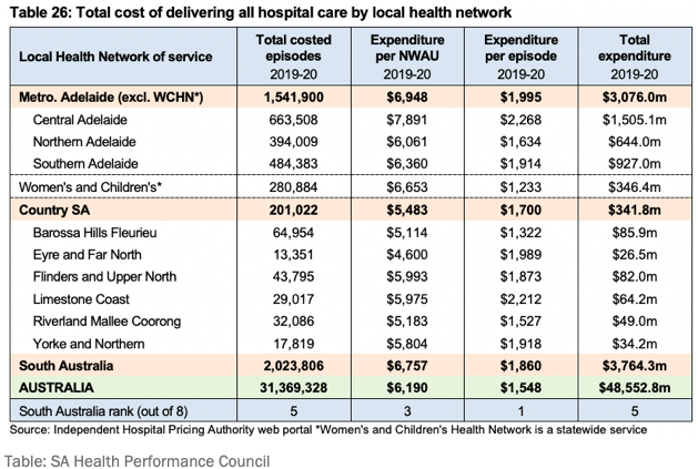 2019-20年期间,CALHN每笔护理费用高达2268澳元,与全南澳1860澳元的平均水平和全国1548澳元的平均水平相比大幅上升。