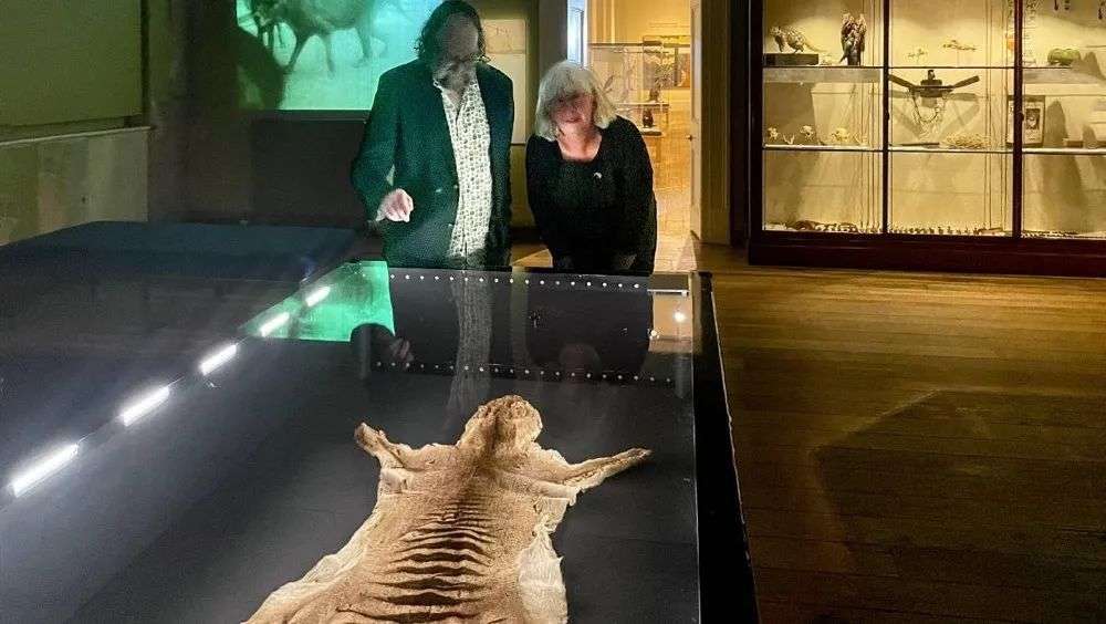 “博物馆的动物标本剥制师WilliamCunningham将发现的这块毛皮晒制成了一张扁平的皮,使它更方便运输,也可以用作学习塔州有袋动物课程的示范标本。”