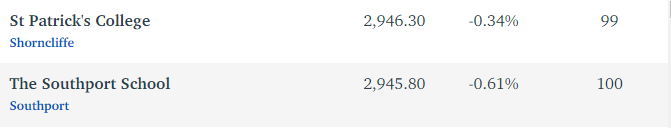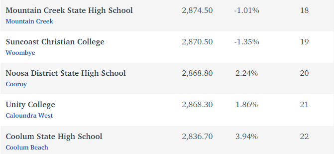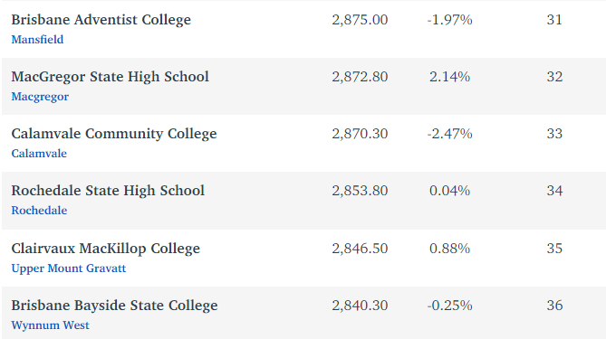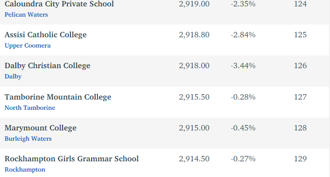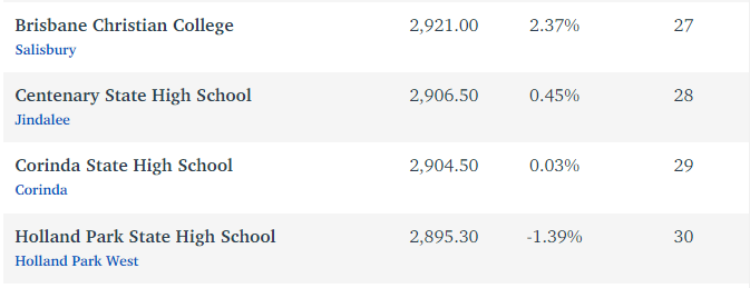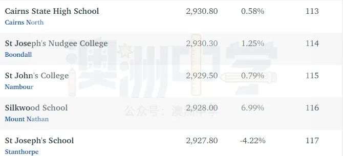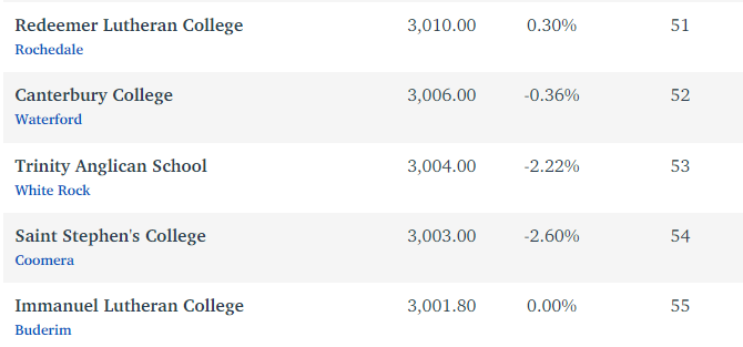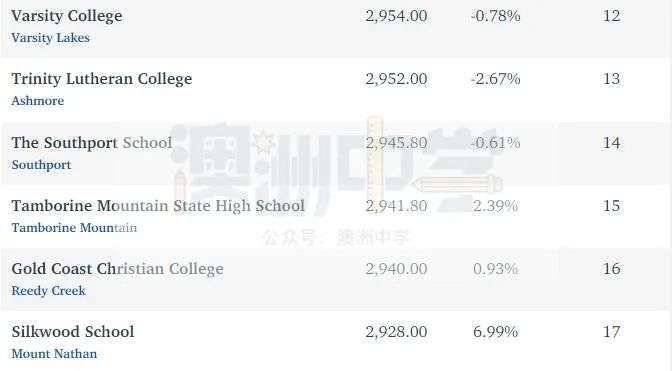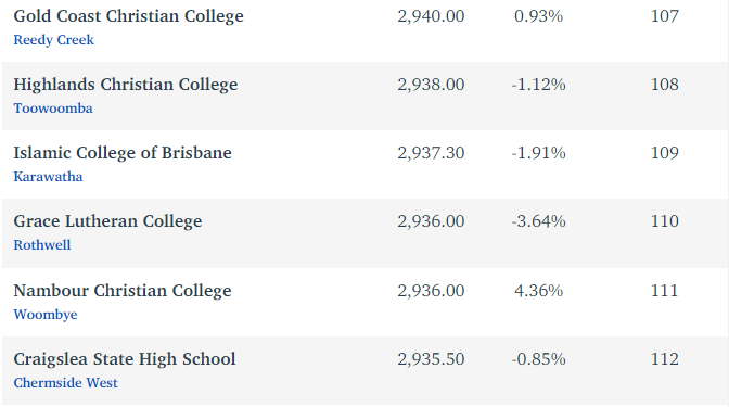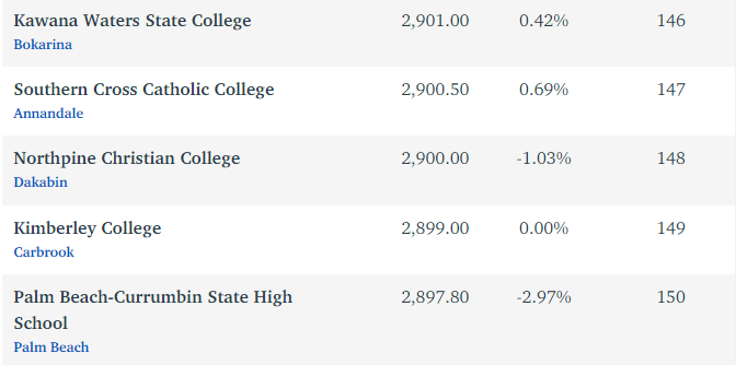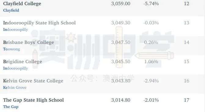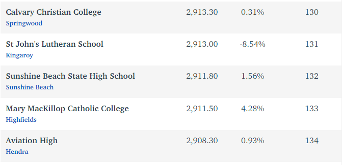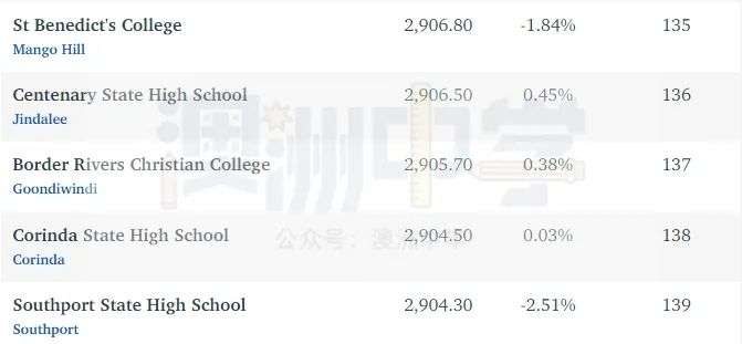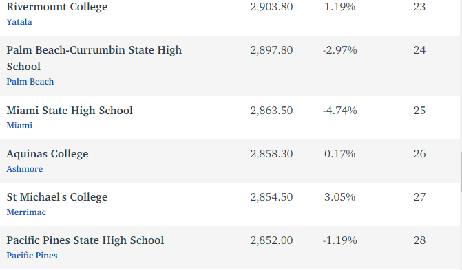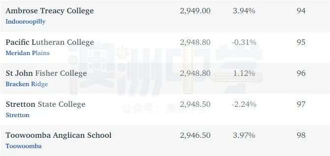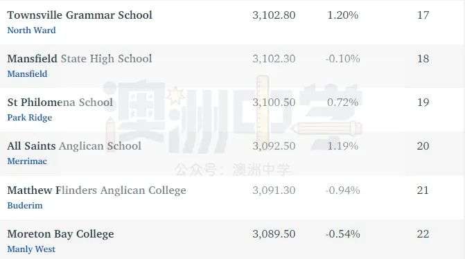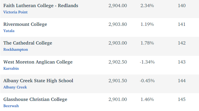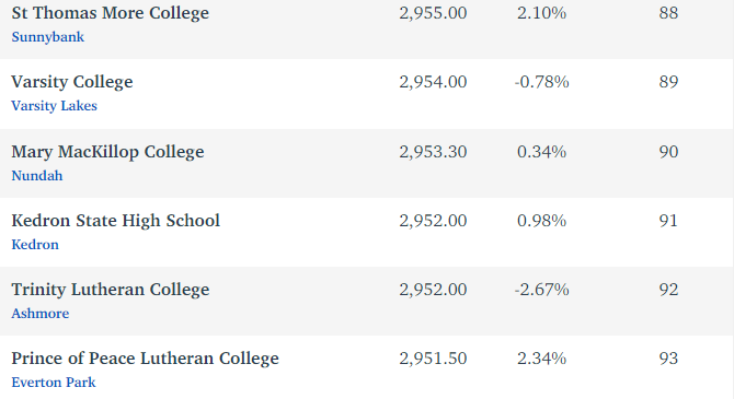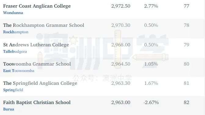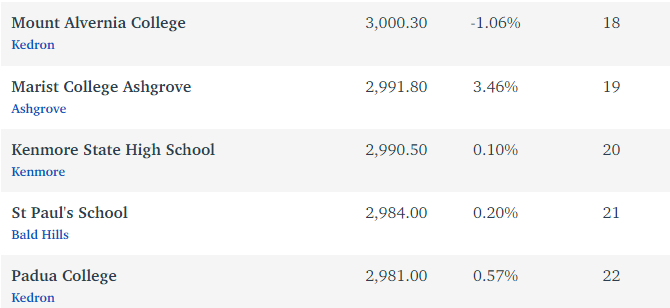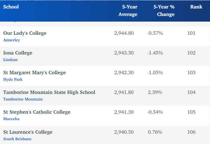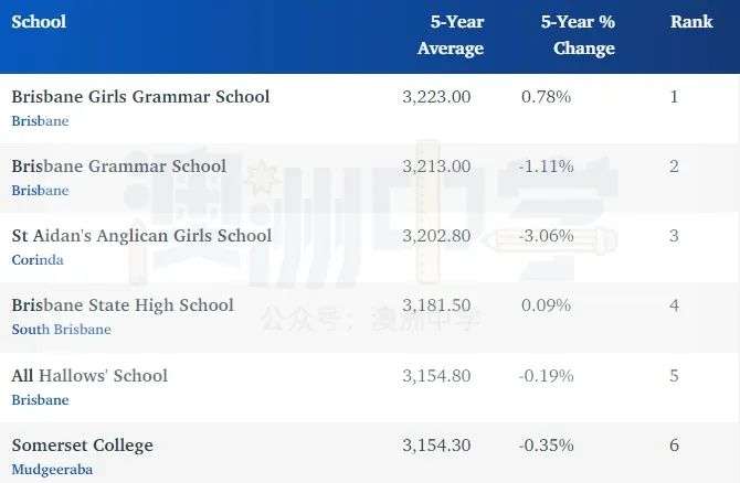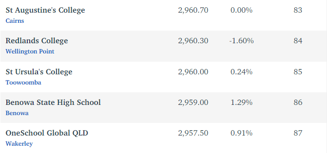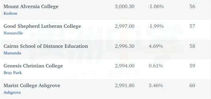 根据NAPLAN过去5年的成绩,排名前100的昆州中学如下所示: