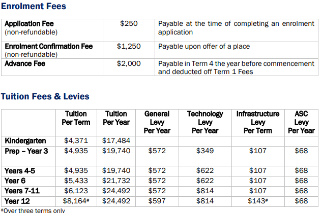 当然,想上这所学校也并不容易,首先就是你得有钱,具体学费如下所示: