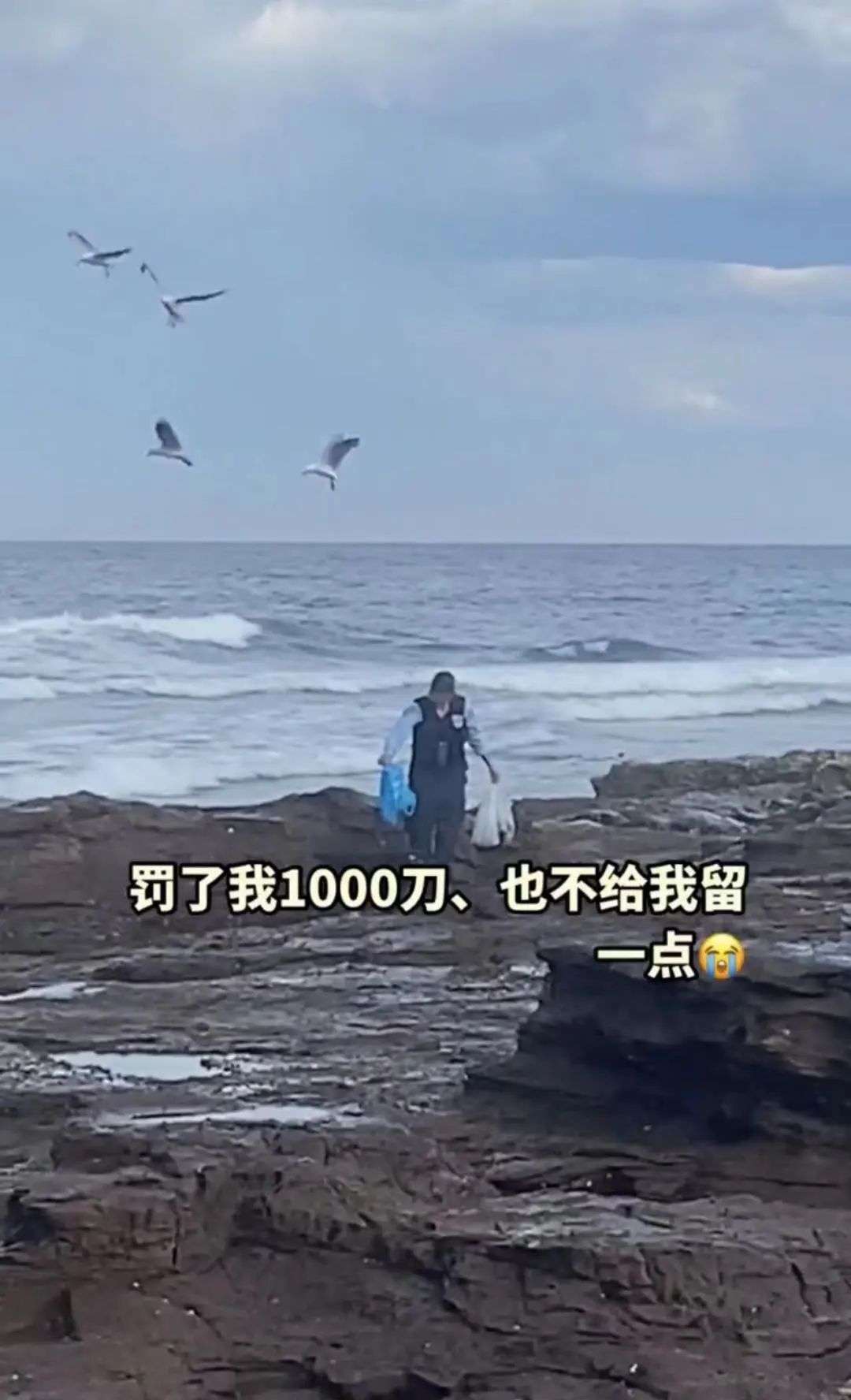 于是小伙一边淋雨一边等着海警一颗颗的数