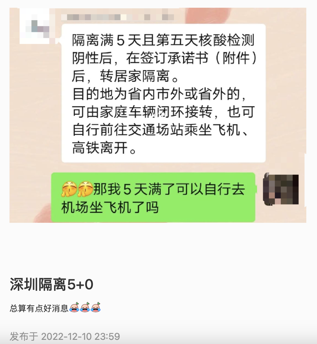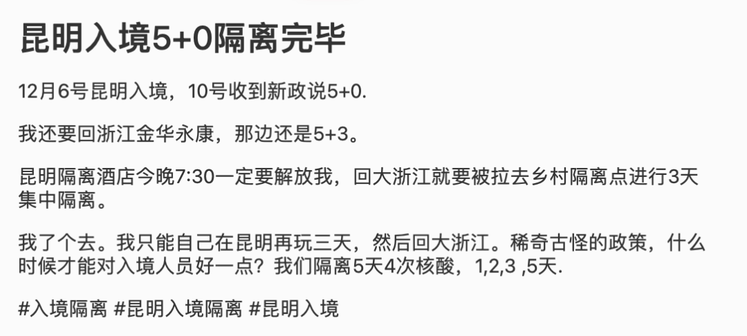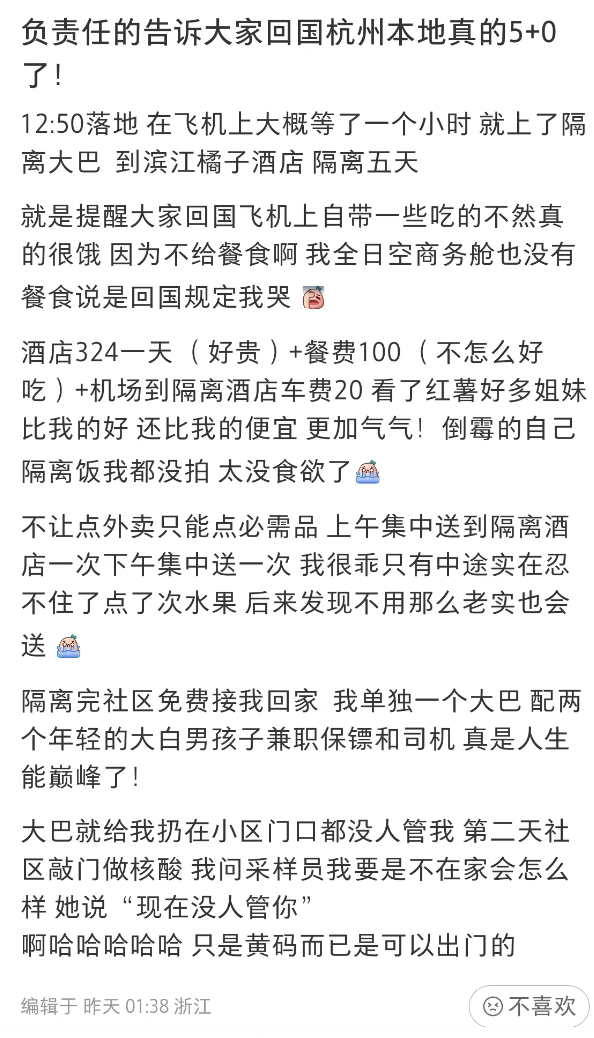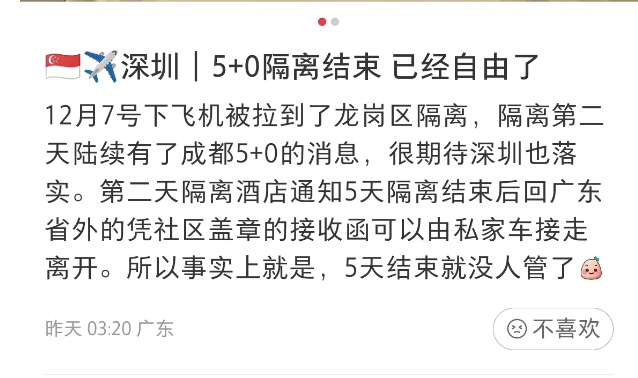已有回国的小伙伴发帖透露:许多地区的入境隔离似乎已经是5+0!