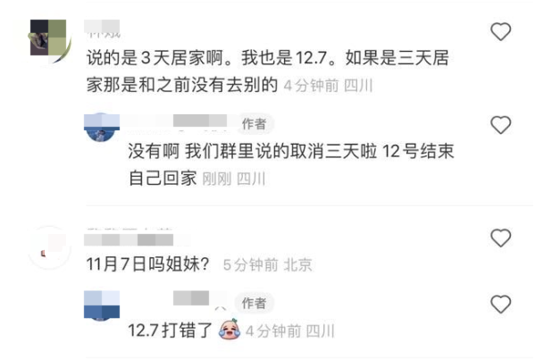 还有其他小伙伴也表示:群里有管理员通知不需要再居家隔离3天。(博主表示11.7号打错字,其实是12.7号落地)