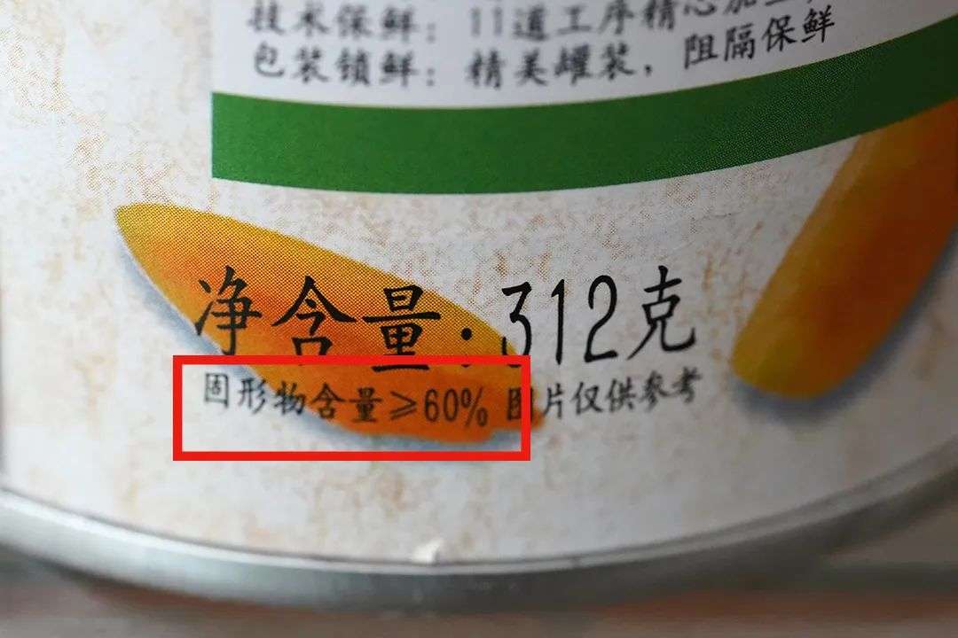 不同的包装,对固形物含量要求也不一样,优级品所含黄桃果肉占比更多。