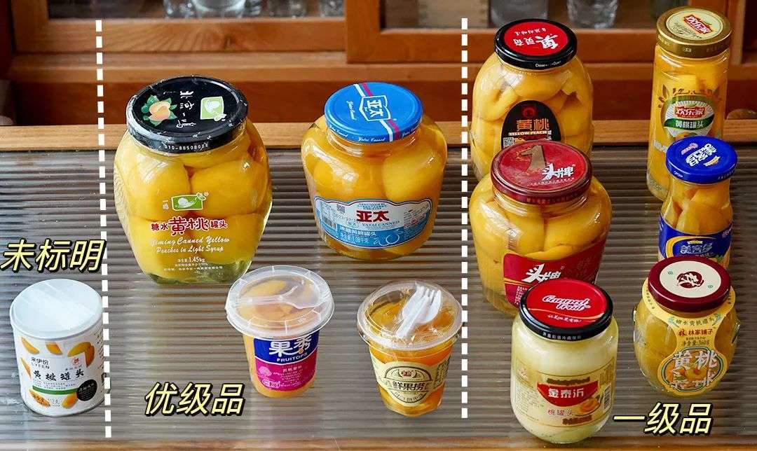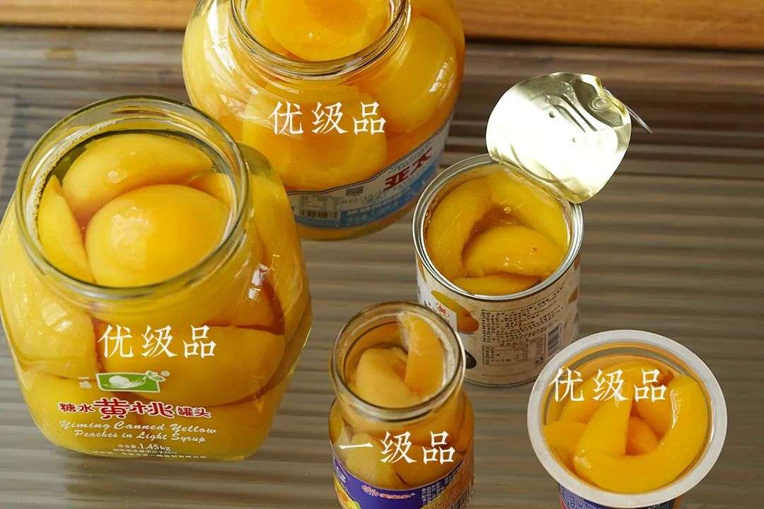 本次测评的黄桃罐头,优级品、一级品分别如下图????
