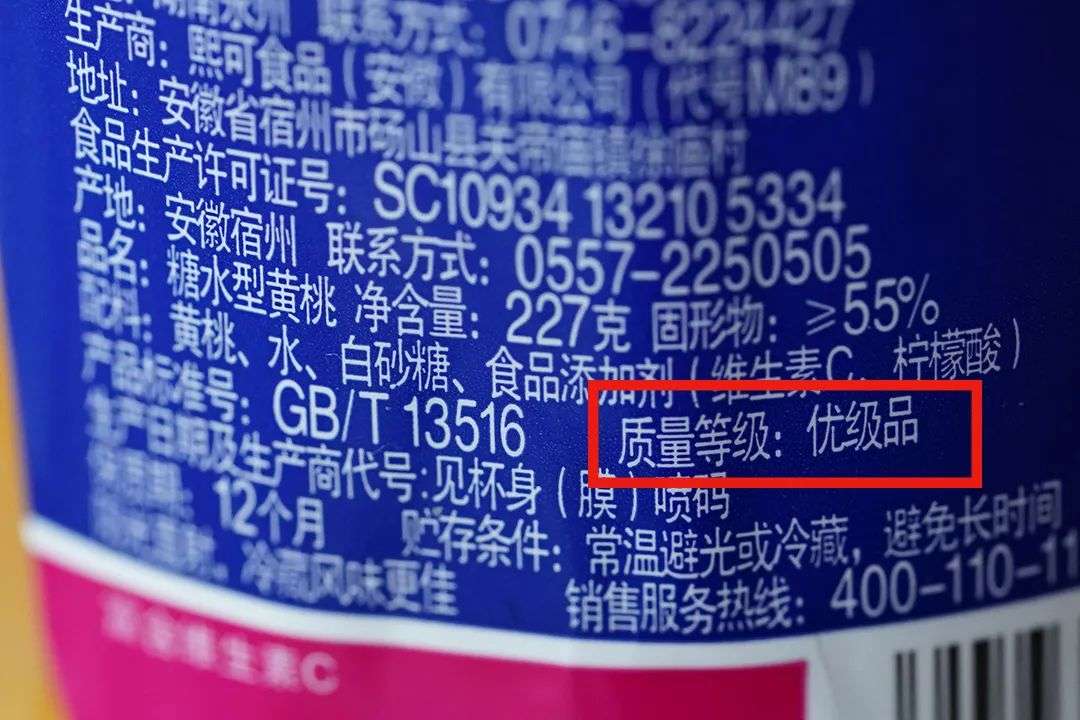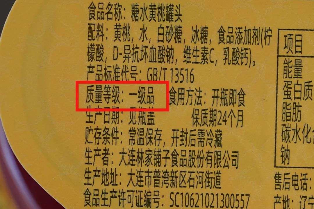 大部分黄桃罐头质量等级在包装背标上都有注明????