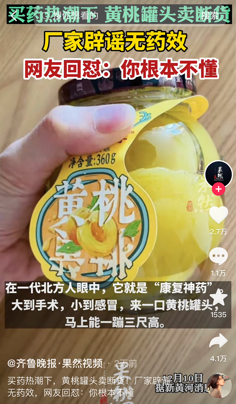 (我们的东北制片大哥立刻回怼我:你根本不懂!黄桃罐头没有药效,但是有魔力!)