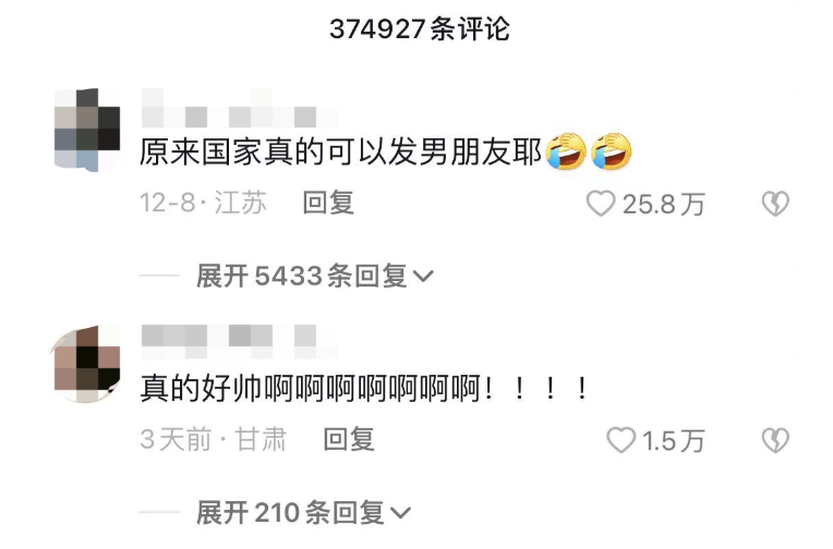 一位网友羡慕的说:“原来国家真的发男朋友”,获得了25万的点赞。