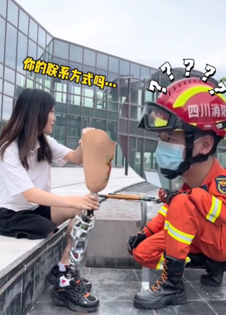 一位帅气的消防员找到了女朋友,还是一位钢腿女孩。