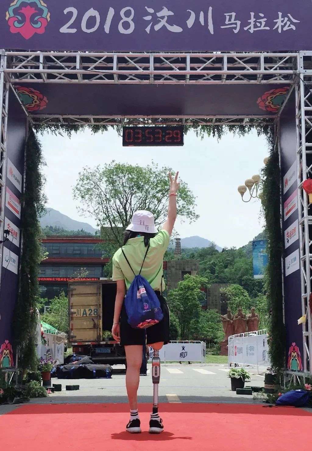 她站在首届汶川马拉松的起跑线,坚定地迈着小钢腿,用了3小时53分钟完成了全程21公里。