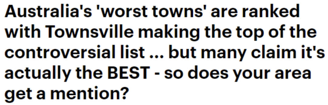 昆州的Townsville近日被网友评为“澳洲年度最糟糕小镇”。但是,当地居民却对此感到很高兴。