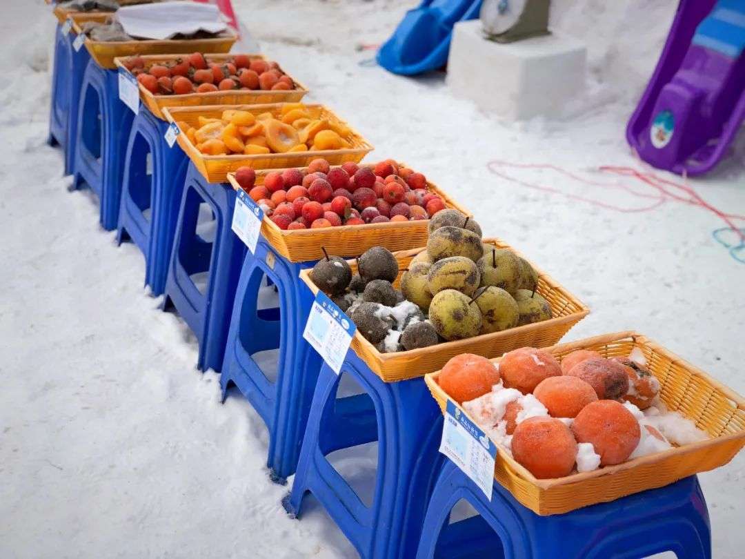 一到冬天,东北的水果摊上就开始售卖冻梨、冻柿等冻货 / 图虫创意