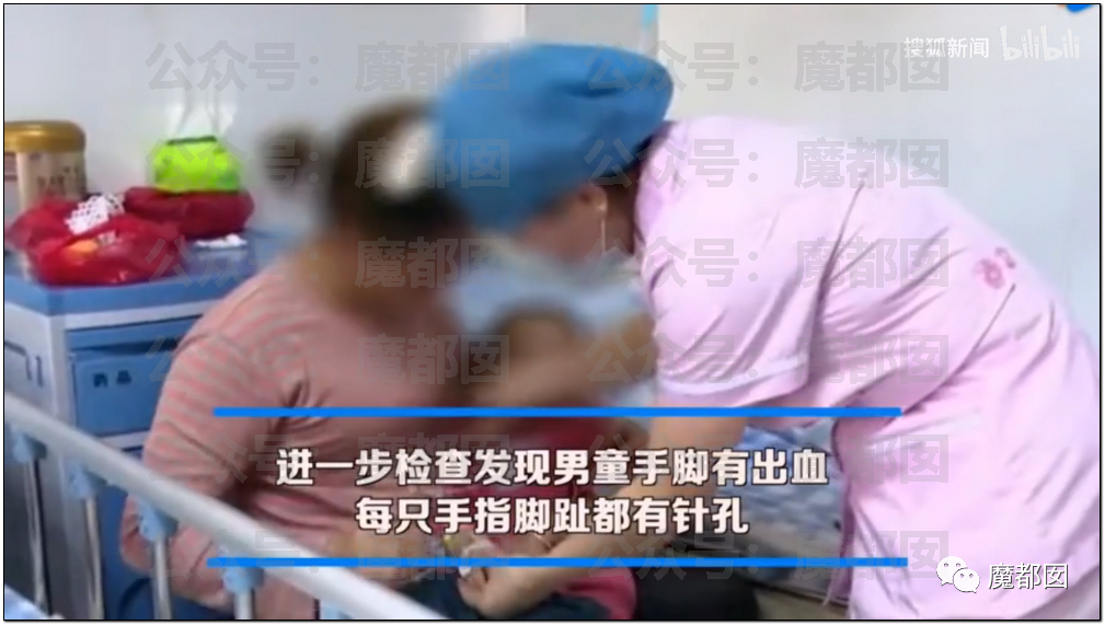 相关的报道其实早就有,孩子发烧抽搐送医院,医生发现孩子的四肢都有针眼。