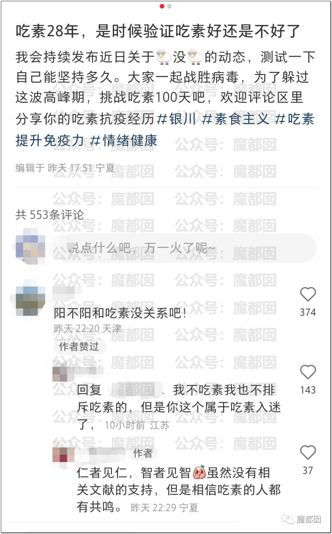 但是接下来的一些事情就不对劲了,比如有人想用吃素对付病毒?