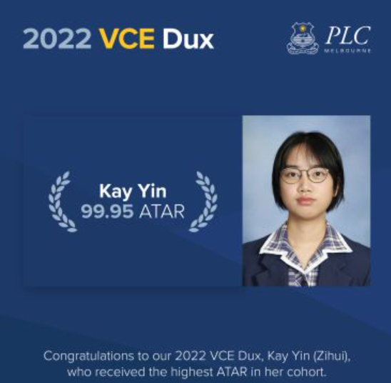 来自Burwood的私立女校Presbyterian Ladies ' College的学生Kay Yin获得了高考状元。