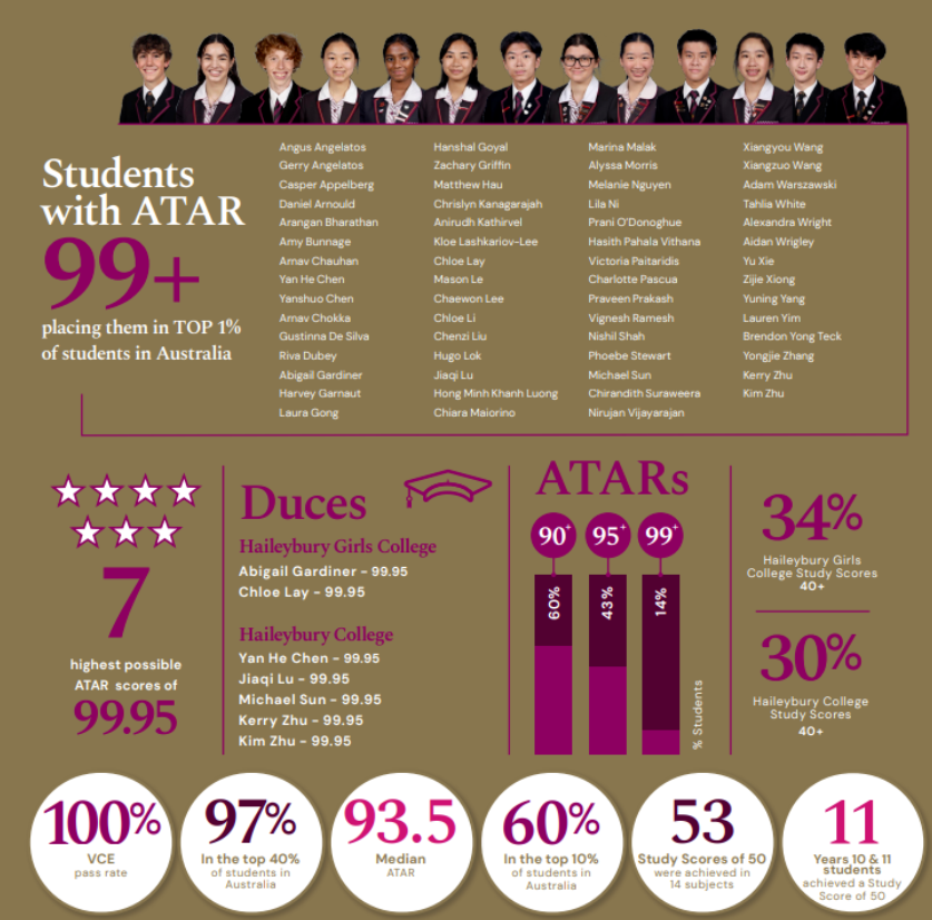 比如Haileybury是男女混校,但采用平行教育模式,将男孩和女孩分成单性别教室接受教育,在2022年VCE高考中诞生了多达7名状元。