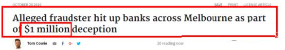 原因竟是他涉嫌利用一本假中国护照取走了墨尔本银行约100万澳币现金!