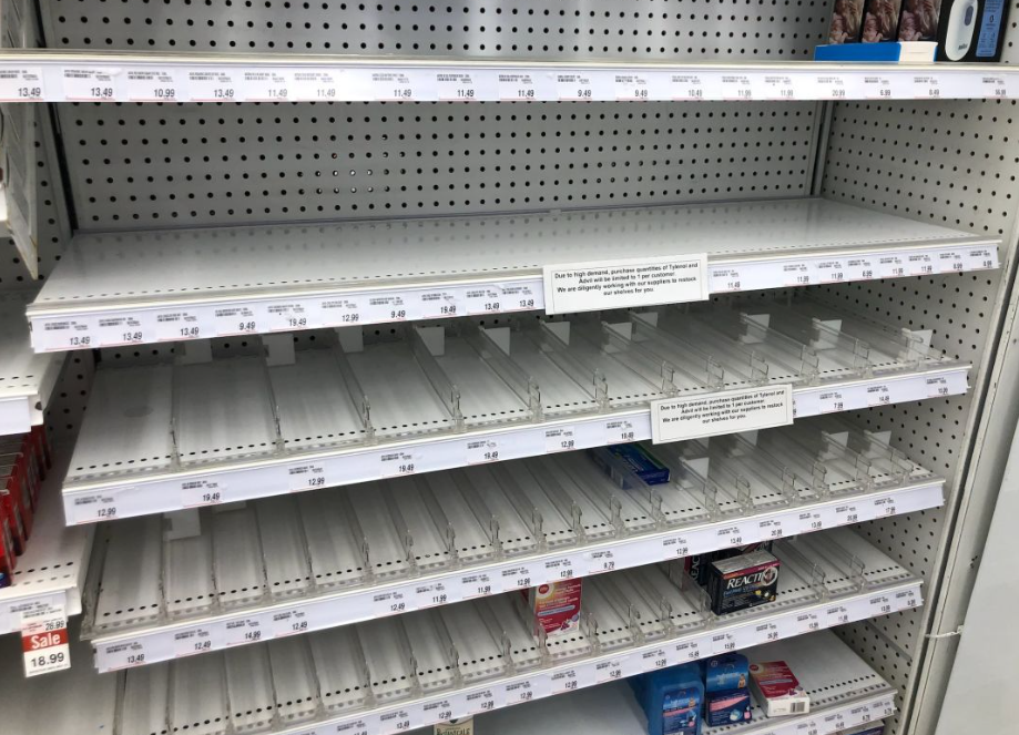 不仅是加拿大,最近美国很多超市和药房也遭遇了不同程度的“退烧、感冒药荒”,很多非处方药被抢购一空,线上的药物销售渠道也面临严重缺货。