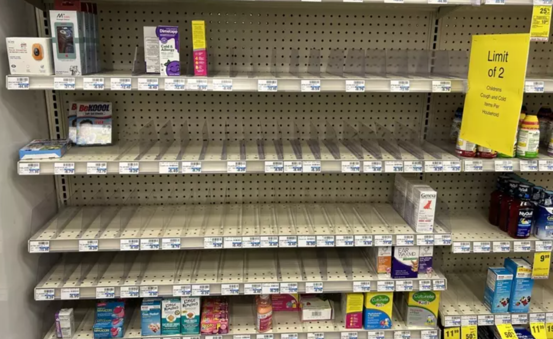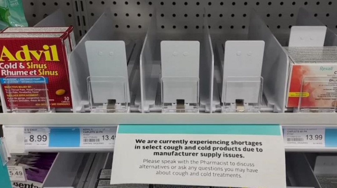 周六Lansdowne购物中心的一家药房仍有少量成人Tylenol供应,Advil数量相对较多。有药剂师表示,儿童药物短缺得情况已经持续了最少一个月,现成人感冒药同样开始出现短缺。