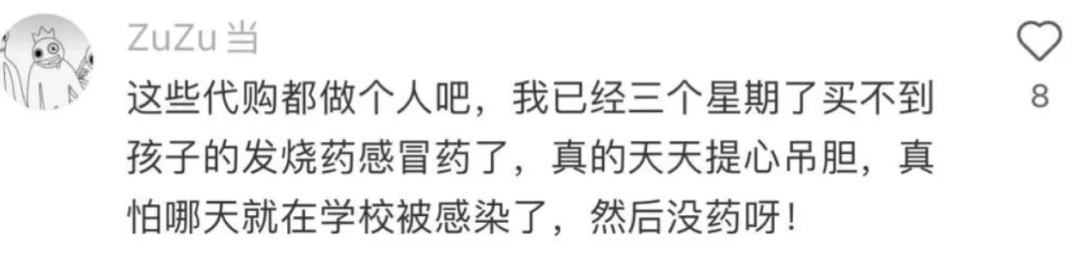 不少网友直指,这其中很大一部分原因是因为代购为牟利大批量采买感冒药、止疼药和退烧药,这种行为甚至导致了真正需要用药的病人根本买不到药。