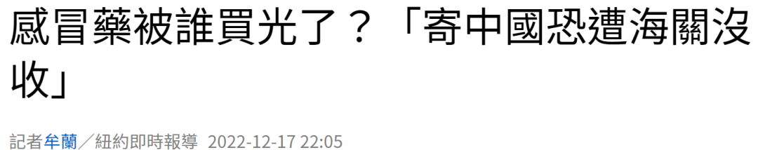 另外需要提醒大家的是,疫情期间快递到中国的时间也不确定,而如果是装有感冒药的包裹被抽查,甚至有可能被中国海关没收。