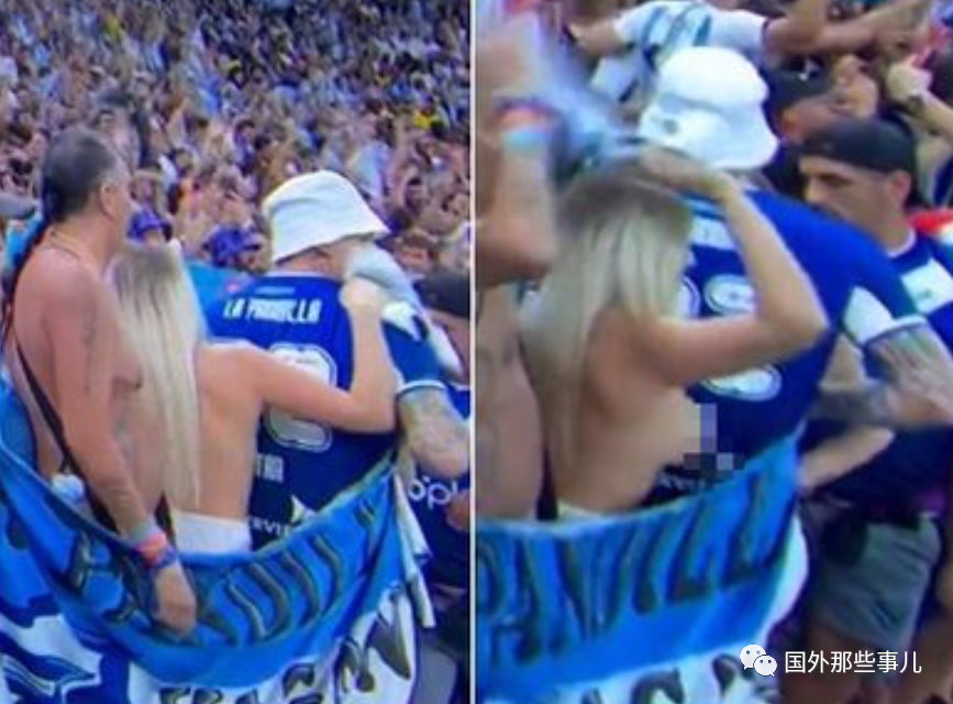 据英国太阳报报道,阿根廷确定击败法国夺冠后,电视转播的镜头转向疯狂庆祝的球迷。当时无意间拍到,一名金发女球迷脱去身上的球衣挥舞,上半身什么都没有。