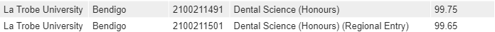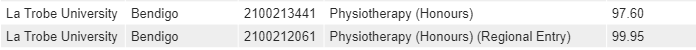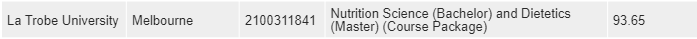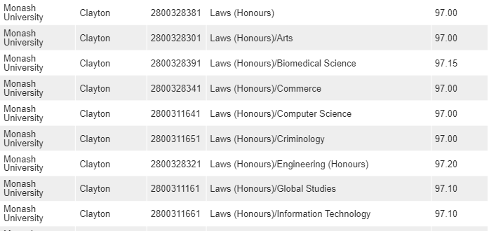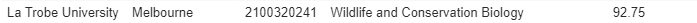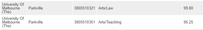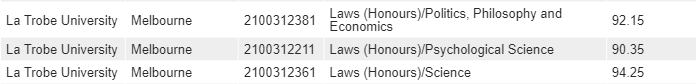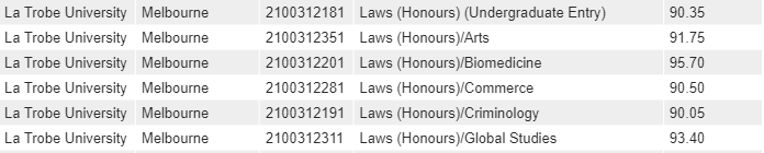 而ATAR录取分数线最高和最低的本科专业都诞生于La Trobe University: