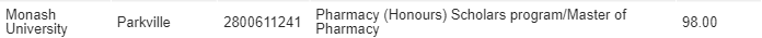Pharmacy (Honours) Scholars program/Master of Pharmacy(98)