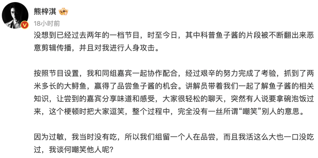 事情原委很莫名其妙,在一个叫《宝藏般的乡村》的综艺上,孔雪儿所在的队伍赢得了最终的胜利,节目组奖励他们吃鱼子酱大餐。