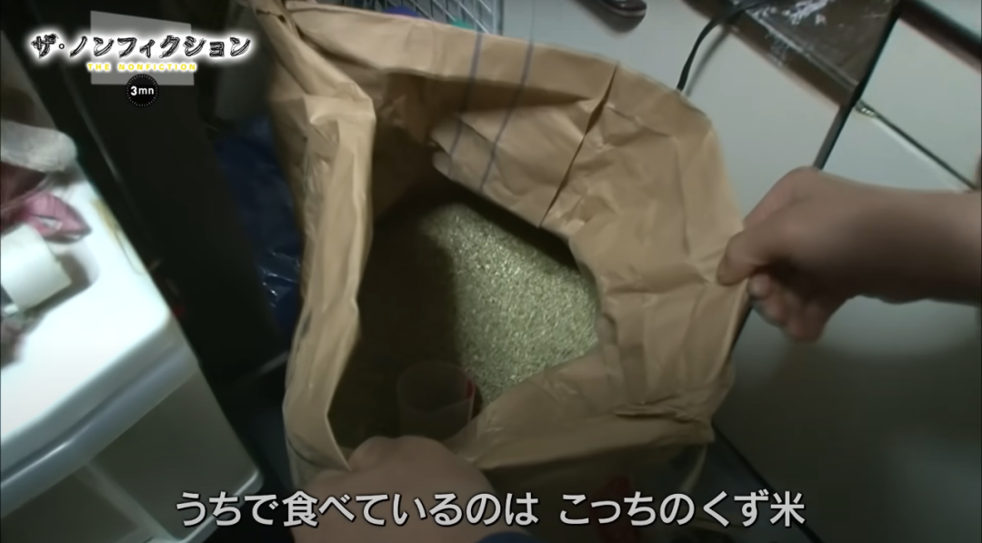 “白天在工地,怕被工友嘲笑,所以会带白米。在家里,我就是吃这个糙米(在日本,这类米属于喂鸟专用)。”