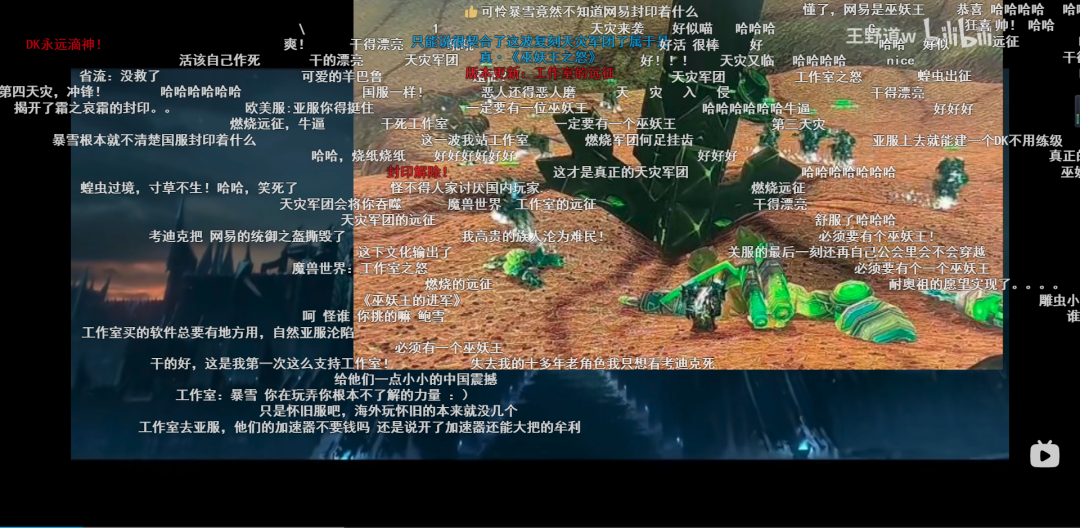 由于工作室在怀旧服里起的脚本都是58级的DK号,因此国服玩家们除了将其亲切的称之为“天灾军团”外,曾在国服与之不懈斗争的网易也被大家安上了一个新的称呼——“巫妖王”。当国服寄了之后,“巫妖王”制衡与统御“天灾军团”的力量不再起效,这些失去了枷锁的工作室,就如同9.0《暗影国度》前夕失去了统御之冠的天灾军团一样,四处为患。主动解除“封印”的暴雪,则像极了撕碎了统御之冠的希尔瓦娜斯,只能被囚禁在噬渊,享受永世的赎罪之旅。