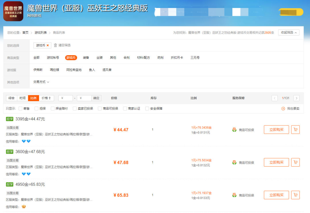 在工作室出海的这段时间,亚服的金价迎来了一波大跳水,无论是怀旧服还是正式服,1块钱能买到的金币已经从原来的30金左右变成了如今的近80金,几乎变成了原来的3倍。这还只是单纯的金价,像是草药、矿物等同样被“天灾军团”所光顾的材料价格,则大有和被工作室肆虐多时,如今已经陷入价格冻结的国服一较高下的气势……