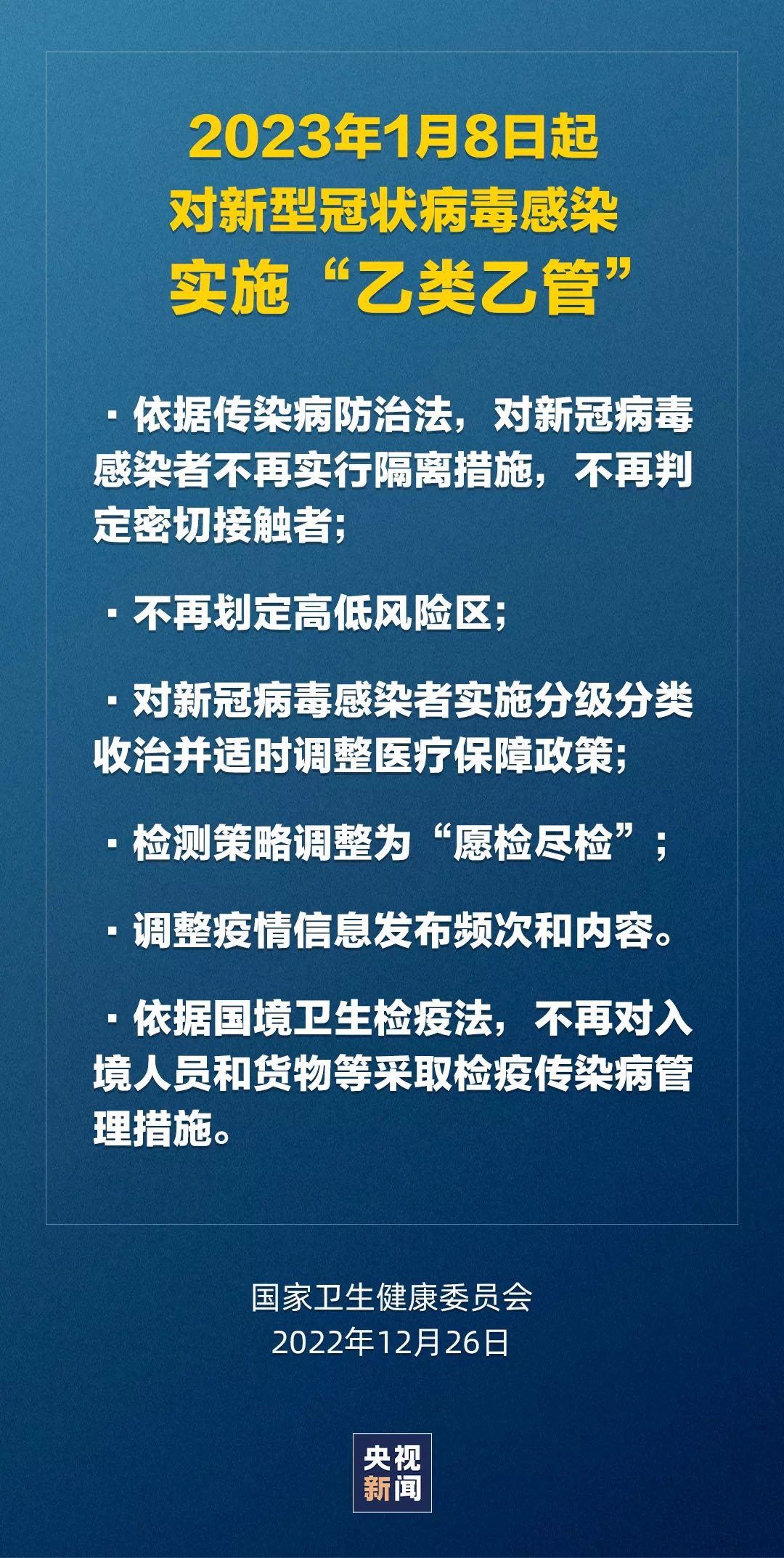 此外,国家卫健委还发布了《关于对新型冠状病感染实施“乙类乙管”的总体方案》