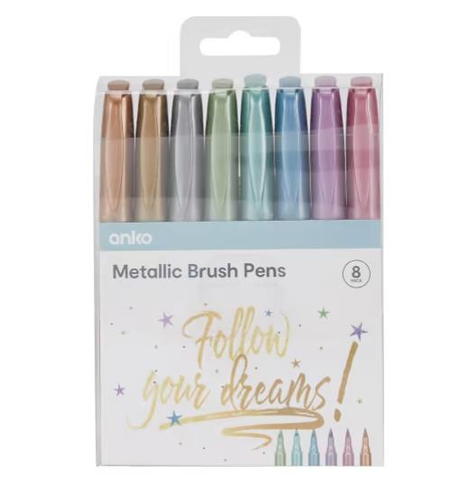 8 Pack Metallic Brush Pens