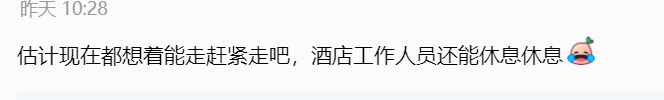 估计现在都想着能走赶紧走吧,酒店工作人员还能休息休息