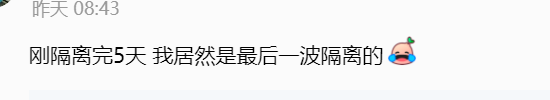 对此,评论区表示:刚隔离完5天 我居然是最后一波隔离的。