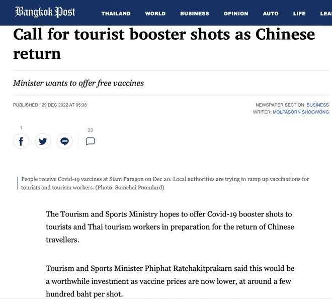 泰国旅游部则说,中国旅客尽管来,我们还提供新冠疫苗免费接种!