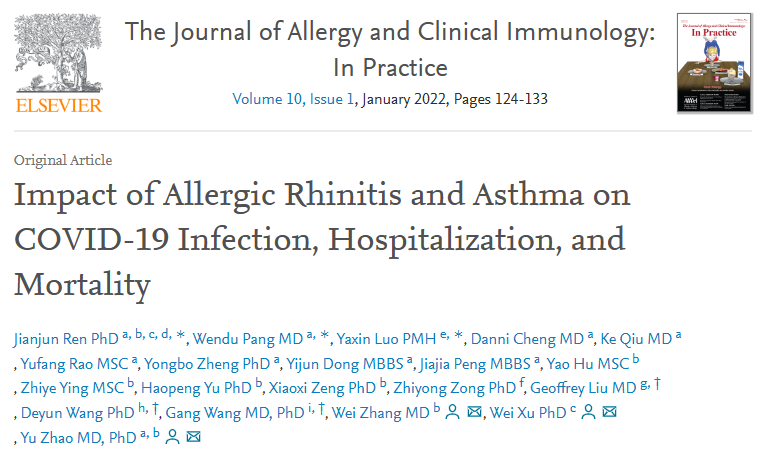 患有过敏性鼻炎可对感染新冠病毒起到保护作用;如果同时患有哮喘,过敏性鼻炎的保护作用稍有减弱;而单独患有哮喘的保护作用并不显著。