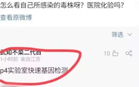 博主回复道自己在苏州工业园区疾病防治中心工作,利用职务之便在P4实验室随手给自己做了个快速基因检测。