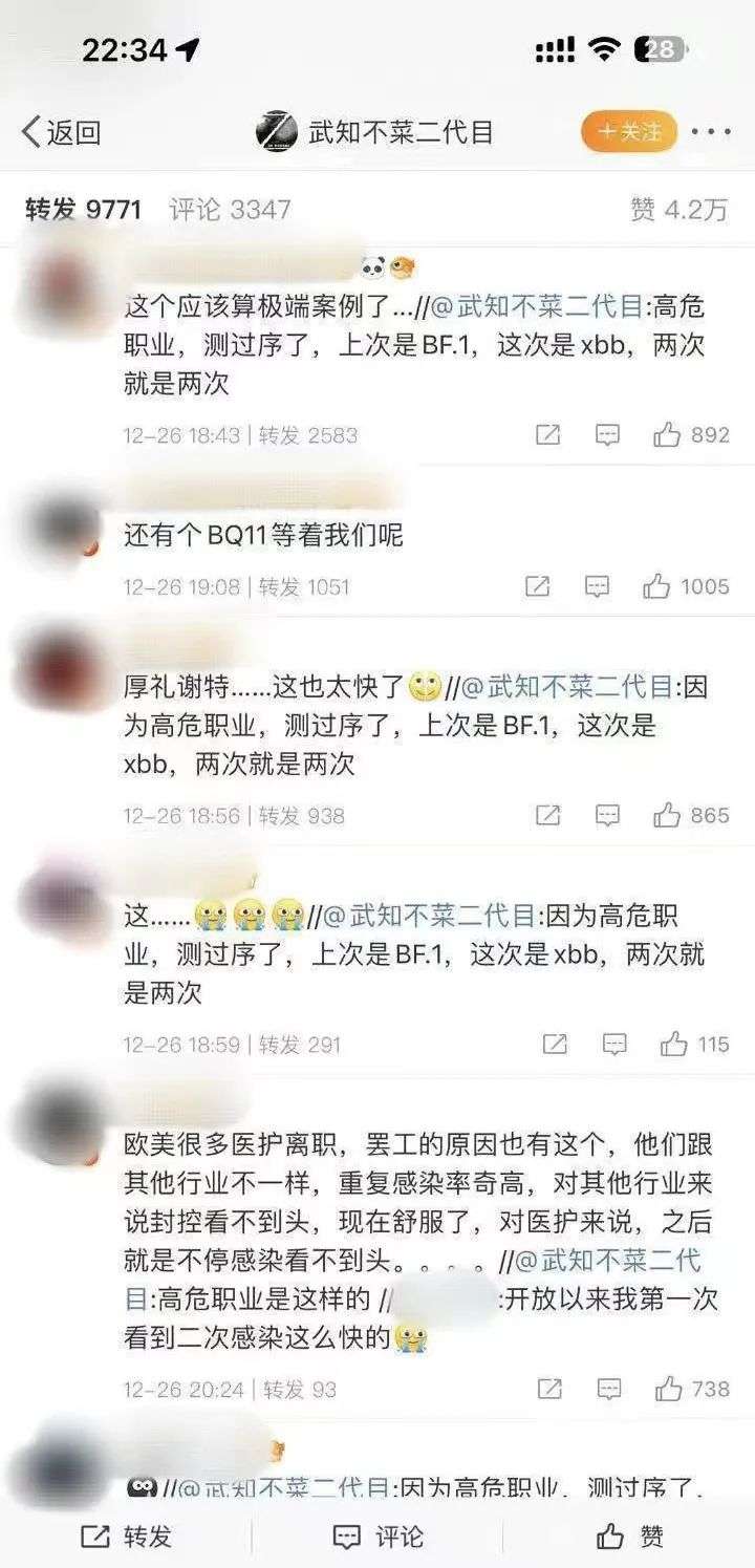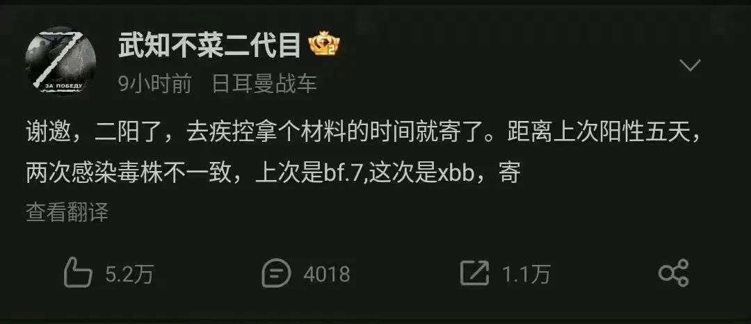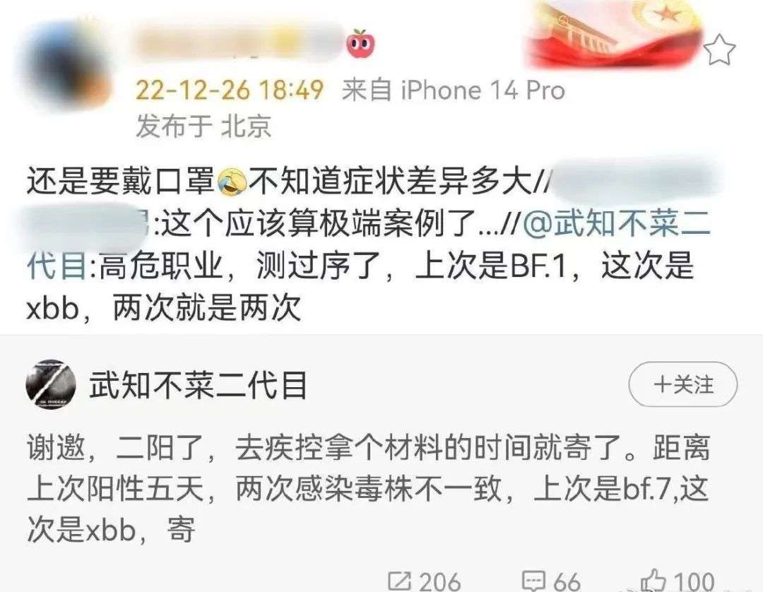 博主透露自己两次感染的是不同变种:BF 1和XBB,