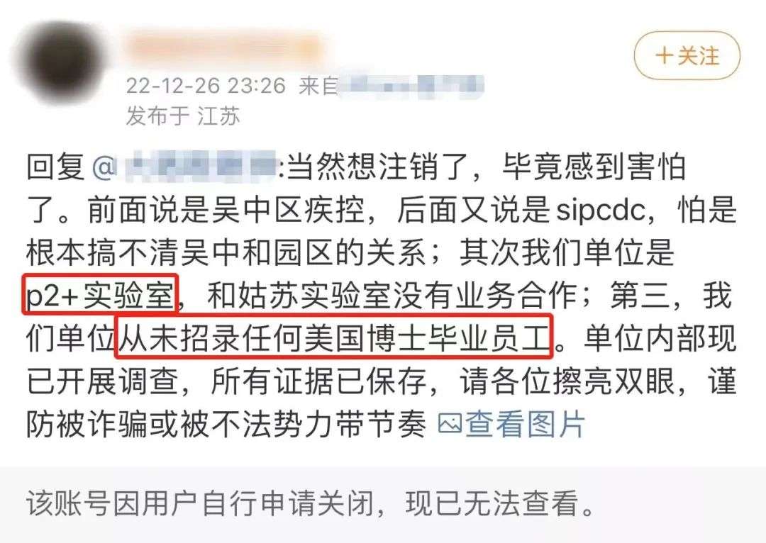 很快,一位真的在苏州工业园区疾控中心工作的网友上线打假: