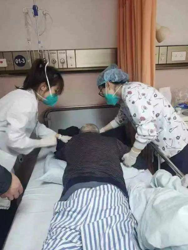 “有些患者能听清指令,可以自己翻身。也有像这位大伯这样的,行动比较缓慢,没有办法很好地配合我们的指令,还是需要几个人一起,给他翻身。”