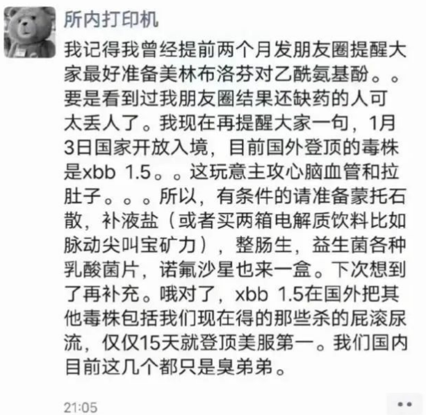 个人猜测,相比还没有大规模爆发的XBB,相比专家们一天一个说法的夸张,可能拉肚子的说法更接地气,更有画面感吧。